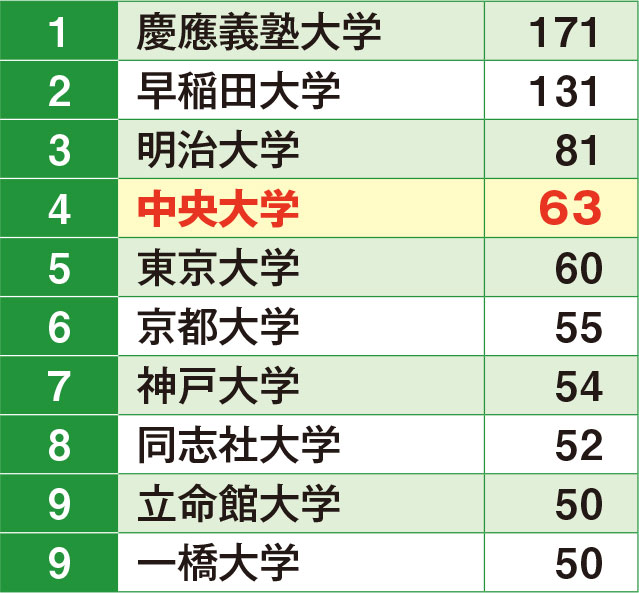 ※ 各大学の数字は、学部卒業および在学者のみ(大学院を除く)。