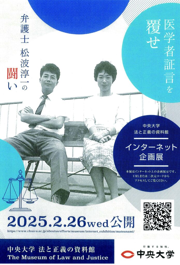「法と正義の資料館」ではこの松波弁護士の業績を称え、本年3月31日まで第1回の企画展「医学者証言を覆せ 弁護士松波淳一の闘い」を実施してきた。そして今般、この企画展をさらに多くの皆様に知ってほしいとの思いから、インターネット企画展を公開していくこととなった。