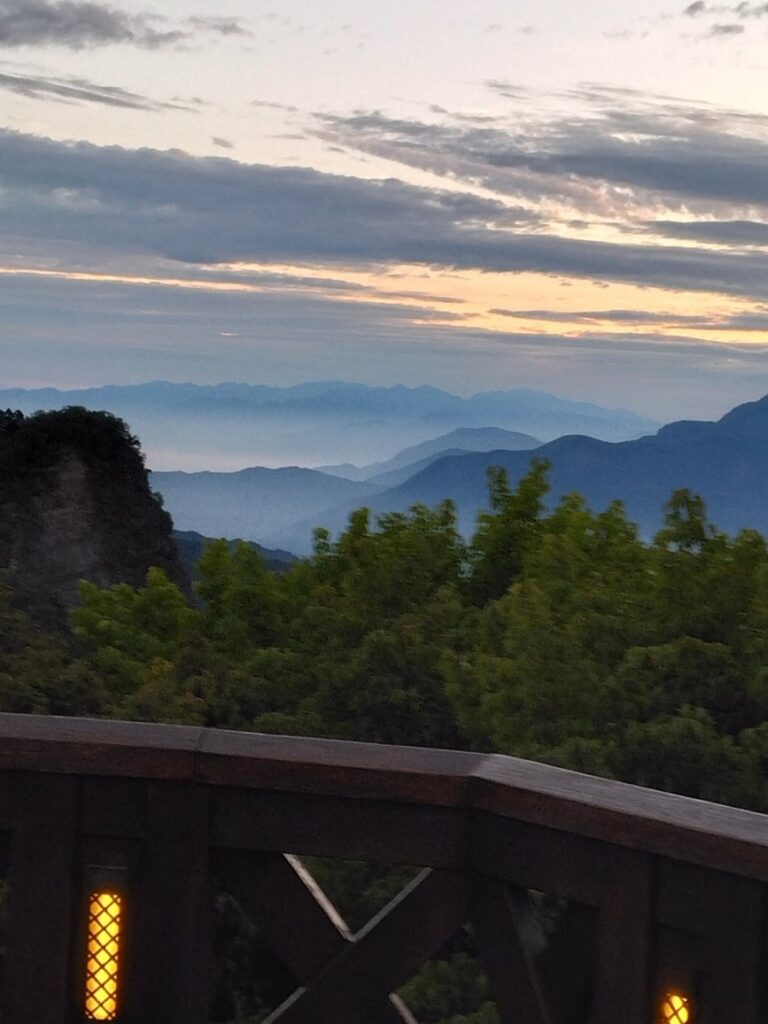 5/8(木)早朝3時起床・4時出発で阿里山のご来光見学を全員にて実施、(阿里山国家森林遊楽区標高2216m・小笠原山展望台)ホテルから徒歩にて「阿里山駅」へ「祝山線」にて急勾配の山道をギシギシ軋みながら30分揺られて「祝山駅」に到着、展望台までの急坂をご来光を期待して15分登ったが、雲に阻まれその瞬間は残念ながら見られなかった。雲海が奇麗であった。