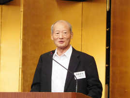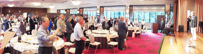 引き続いて役員改選議案が矢崎幹事長から提示されました。これによると、新会長に清家春夫氏(現副会長)、副会長に星野則昭氏(現副幹事長)、幹事長に長田康道氏(現副会長)が推戴され、現会長の清水正氏、現幹事長の矢崎勝氏、現副会長の山本剛嗣氏が、それぞれ幹事に復帰されました。これについても異議なく承認されました。
