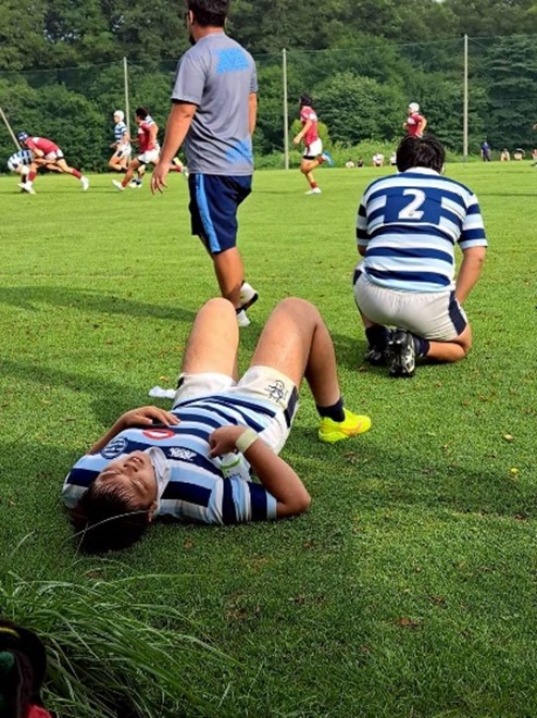 白熱した試合の合間、全力を出し切った選手がグランドに倒れ込む。こんな青春を謳歌できる彼らが羨ましい。