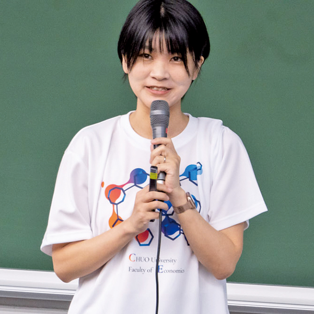 8月6日のガイダンスを担当した経済学部広報担当の岡本千草助教は、学科再編の目的と背景について「現代社会は、国際紛争・格差・環境問題・異常気象など、複雑で多様な課題が絡み合う時代。これらに対応するために、中央大学経済学部では、順序立てて基礎から積み上げる系統履修に基づく確かな力の養成を掲げ、専門教育の深化と進化を目指して学科再編を実施する」と伝え、キーワードの「シンカ(深化・進化・真価)」は、「ただ学ぶだけでなく、学んだ力を社会で発揮できる人材の育成が目的」だと説明した。