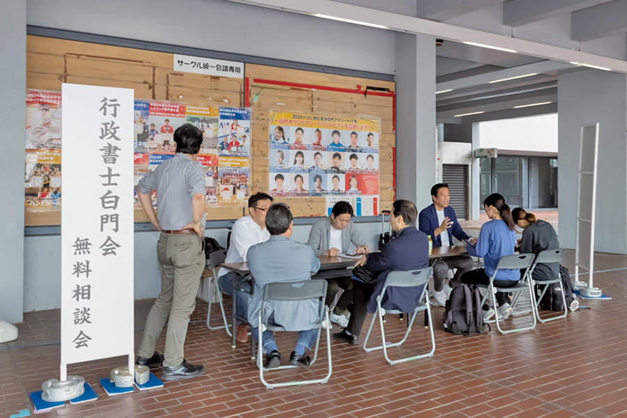 地域支部による地域の銘菓や地産の野菜等を販売。職域支部(資格保有者)による不動産、法律、税務相談なども。