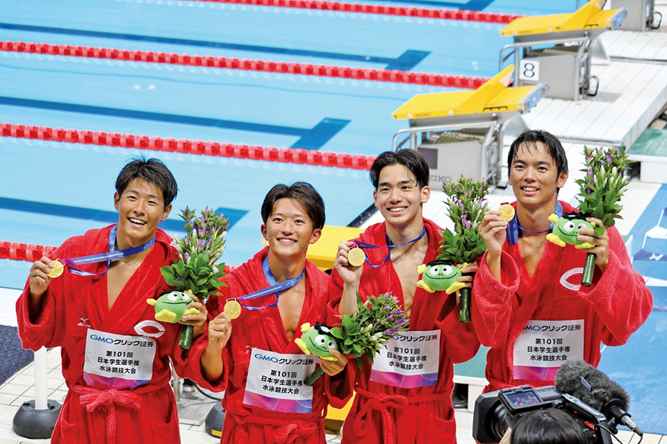男子4×100mフリーリレーの優勝メンバー