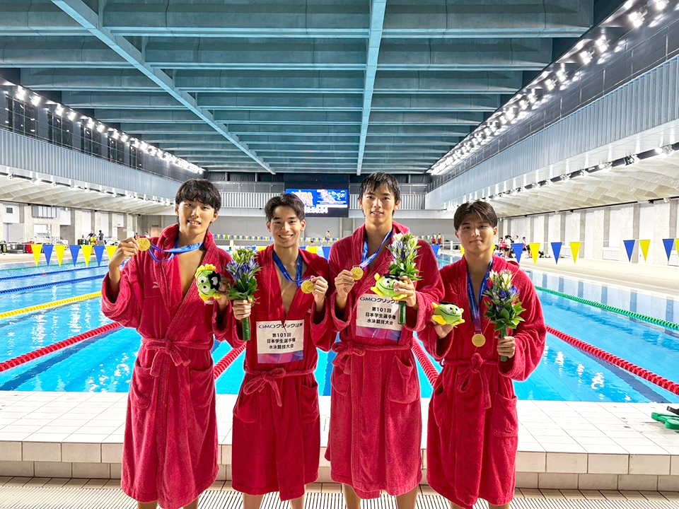 9月4日~9月7日東京アクアティクスセンターにおいて開催された第101回日本学生選手権水泳競技大会競泳において本学選手が大活躍して男子総合2位、女子は9位となった。