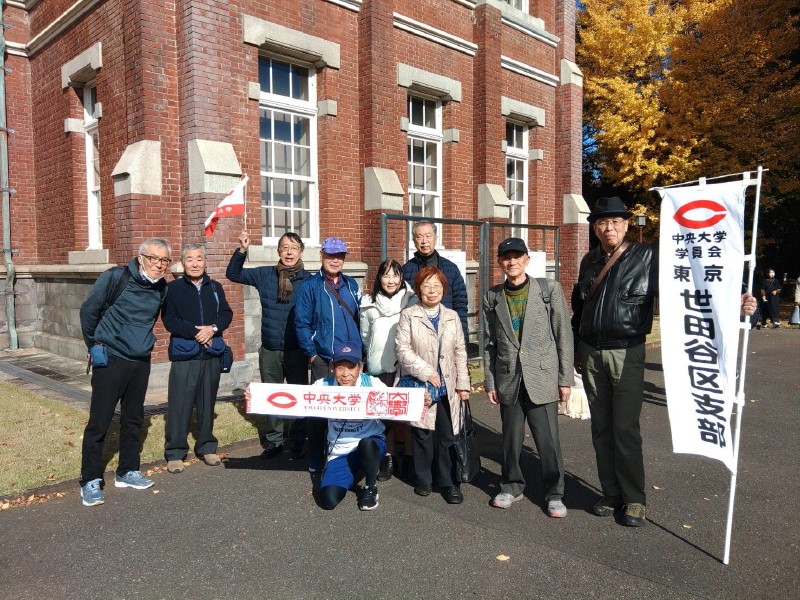 11月29日(土)、世田谷区白門会の「名所巡り・歩く会」を3年ぶりに再開しました。今回の散策路は皇居近くの「北の丸公園」で、増田支部長中心に永井和之名誉顧問(元総長・学長)など11名が参加。