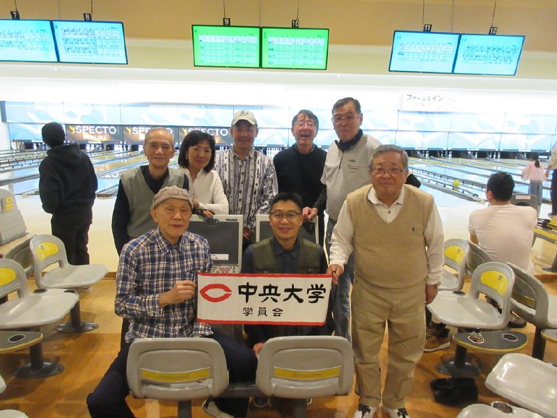翌 11月30日(日)は、年1回開催している「世田谷白門会ボウリング大会」を行いました。会場は昨年と同じ「大蔵ボウル」で、今回は増田信之支部長など8名の参加者で2レーンを使用しました。それぞれ2ゲームを投げての競い合いですが、普段投げていないのでほとんどの人が100点を超えない状況でした。優勝はボウリング部幹事の柳副幹事長で245点。そして準優勝は、前日の「歩く会」の疲れを残していた増田支部長の223点でした。終了後、場所を移して懇親会と授賞式を行いました。