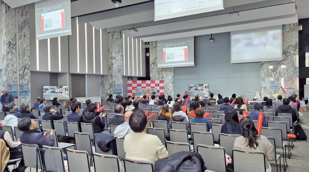 3日に駿河台キャンパスで開催されたパブリックビューイング会場では140名余が参加。オンラインは2日間で200名を超える参加者があった。