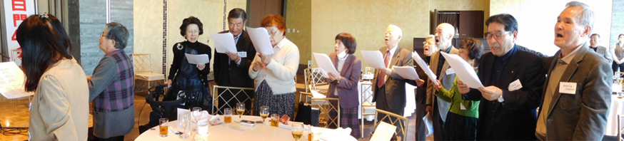最後に星野副会長のリードで全員が肩を組んで惜別の歌を歌いました。そして長田幹事長が閉会の挨拶をされました。この中では来年は旅行会として台湾への旅行などもしたいとの抱負を述べられました。