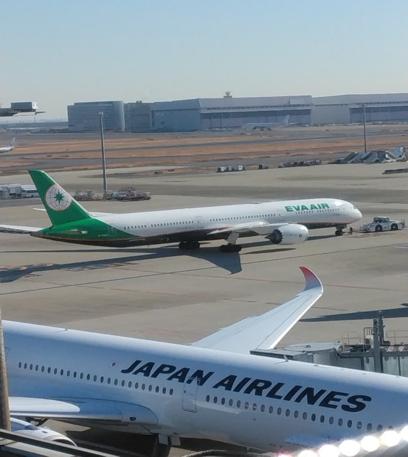 羽田離陸中の視察団の乗るエバー航空