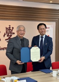 世新大学(陳清可学長・左)・中央大学(松永伸也課長・右)との姉妹提携調印証書を交換